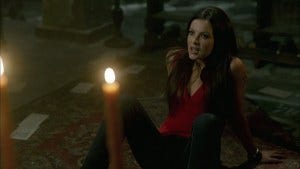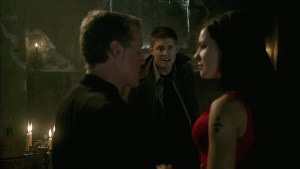 It’s a theme that was so intriguing and I was hoping they’d make more of, but Season 3 is the season that was cut short by the writer’s strike and changed course in multiple ways, so nothing ever really came of that question unless you want to look at it as foreshadowing of Sam eventually losing his soul. We’re also reminded of the Colt that can kill anything, and Ruby’s manipulation of Sam with the promise that she can help him save his brother, the only thing Sam cares about right now.