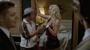 Meanwhile, Sam goes back to the bar, where the same sex worker who tried to entice Dean also hits on Sam, saying he looks kinda tense.