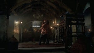 It’s Father Gil who breaks through the collapsed wall first, unfortunately. Dean rushes him, but is tossed across the room.