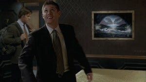 They don’t get much time to enjoy it, though, because two guys get into a fight and one shoots the other point black in the head. Dean tackles him while Sam throws holy water on him, which does nothing. The guy insists that he did it because the bastard slept with his wife, while Sam sees Trotter staring.