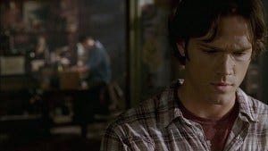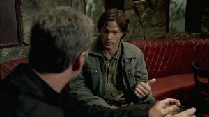 They have an entire conversation where Father Gil knows who he’s talking to and Sam doesn’t. He asks if Sam ever thinks about doing anything else. Sam says he likes being able to help people. The Father asks if Dean finds trouble often.