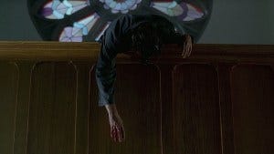 The opening scene is beautiful and disturbing, a church lit by candles that suddenly flicker as a wind blows through. A parishioner in the choir loft insists that God isn’t with them anymore as a nun and priest look up – to see the man pull a gun and shoot himself, collapsing.