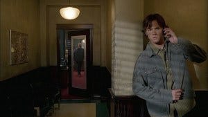 There’s a great shot as the boys go into their motel room – we see them upside down, Dean so pleased by the mirror on the ceiling, no doubt imagining all kinds of uses for it…