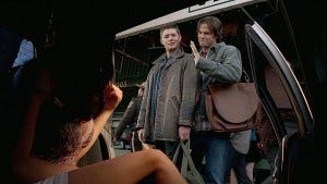 He pays her, she leaves, and they all watch her walk away. Sam and Dean look at Richie.