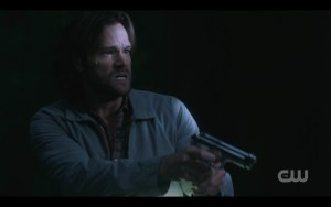 Back to Sam and company looking for the vampire girl who escaped Michael. They find her apartment and when she tries to escape out the window, Sam Effing Winchester kicks in the damn door and bursts in wielding his gun and damn, is it hot in here?