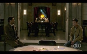 Speight is proficient at juggling the back and forth story lines that Supernatural sometimes serves up, and he did an admirable job here, but I tend to get whiplash if we’re bouncing back and forth between too many stories no matter how proficient the directing is. That was the case here to some extent, though Speight managed to keep the transitions smooth enough that I didn’t feel too jarred. Because there are so many story lines going on, I’ll touch on each scene briefly here, but with the through line of what worked and what didn’t in each one.