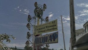 In Medford, Wisconsin, kids enjoy an old fashioned fair and carnival that’s come to town, laughing at a sword swallower and fire breather and some clowns.