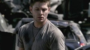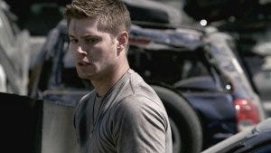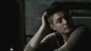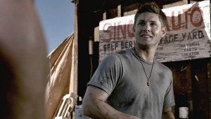 Sweaty, in just a tee shirt and worn thin jeans, Dean looks vulnerable. (And really really good.)