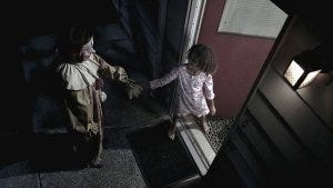 Meanwhile, a little girl keeps telling her mother to look at the clown, which the mom can’t see.