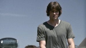 One of the most memorable and heartbreaking scenes in the series is in this episode, as Sam and Dean give their father a hunter’s funeral. Sam is sobbing, tears rolling down his face. Dean is stoic, eyes shining with unshed tears.