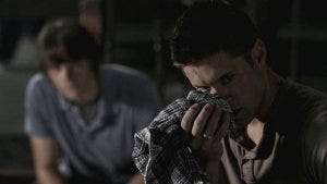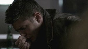 But Dean refuses to go there, perhaps worried that if he does, he’ll lose that fragile sense of composure that he’s desperately hanging onto. Instead he makes a joke of Sam’s concern, pushing him away again.
