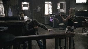Dean quickly gets the gun away from her, only to lose the upper hand again when she punches him in the nose.