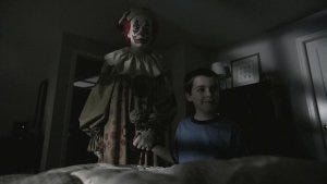 Alas, she does not. Instead she wakes up in the middle of the night and sees the creepy clown outsider her window, smiles and goes downstairs to let him in. What the hell??