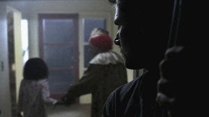 The little girl invites the creepy clown into the house; Sam and Dean rush in and Dean shoots the clown as the little girl screams, but the creepy clown gets right back up and jumps through the window.