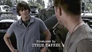 Dean: Sounds good – got any leads on where the demon is? And, oh wait, the Colt’s gone… We got nothing, Sam. The only thing I can do is work on the car.