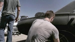 Sam and Dean ditch the old car they were driving, Dean muttering that he hates this friggen’ thing anyway.