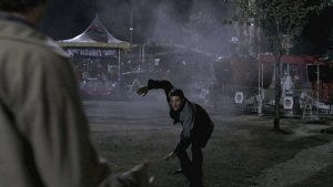 The brothers ponder about a spirit being attached to its own remains, and the knife thrower overhears them, warning them that the carnival is a tight knit group who don’t like outsiders and take care of their own problems. Sam and Dean come up with the cover story that they’re writing a book about ghosts instead of hunting them, Dean trying to use all his charm to make that believable.