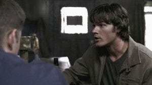 Jared Padalecki does an amazing job as Sam here, his voice wavering and his eyes shining as he goes on, being honest with his brother – and with himself.