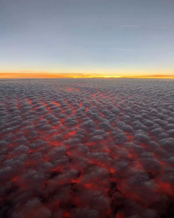 THE FACTS: A photo of a blanket of gray clouds over a glowing red background was not taken over the recent California wildfires, despite reports identifying it that way on social media. The photo was actually taken in July by Nathan Province over Honolulu and shows altocumulus clouds during a sunset. Province told The Associated Press that the photo was taken about 7 p.m. from an altitude of around 30,000 feet while he was on a flight to Hawaii. Province said he took the photo with his cellphone about 30 minutes before landing and later posted it to social media. “I think it’s nice that people like the scenery and the beauty of Hawaii, but it is sad that people are using it continually for fake news,” Province said in a text message.