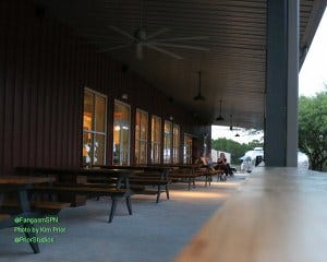 FBBC is serious about their beer brewing and about taking care of the environment of this city they all love. They have well water there, so they bring water in from Austin – and then they carry out the chemical waste water even though they would be allowed to dispose of it in the septic system there. We saw the whisky barrels where they age the Grackle (the one that’s a portmanteau of Ackles and Graul, Danneel and Gino’s family name), and heard all about the ingredients and the process that goes into making the various beers. Periodically, Dave toasted the rest of us with the beer he was holding and we all responded in kind. It was about 150 degrees in the warehouse, but I was learning so much that I was determined to stick it out.