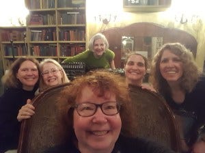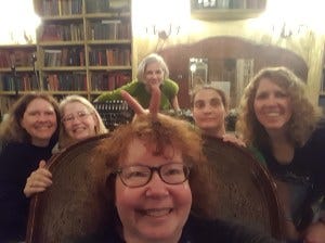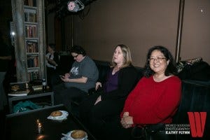 We rushed back to the hotel, got changed in record time, and sprinted back to The Study to get everything set up before the guests started arriving. By this time, I was calling the contributors who were there to help me (and keep me from having a heart attack) “my crew”, because they are simply an amazing bunch of women. Contributors Kim, Laurena, Krista, Karla and Cris, along with lifesaver Liz and local friend Lua helped me set everything up. Liz’s sister Kristen came to help out and so did local fan Cyndi. I’m so grateful to all of you! It takes a village, people!