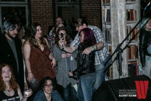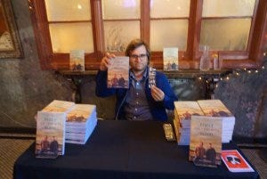 We had also arranged for a local independent bookstore, Chevalier’s, to come to the party with lots of copies of the book for people to buy, but that person was currently having a very hard time actually finding the venue.