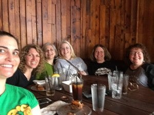 Finally Kim and Krista arrived and we could get into our room. I started to calm down. We met up with another contributor, Karla, and our talented cover artist, Cris. Time for food and drink!
