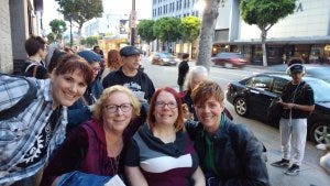 My friend Liz (who is one of the heroes of this story) picked me up at the tiny little Burbank airport, we had lunch, and then headed to my hotel. Only to find out that they hadn’t put my name on the reservation! Contributor Laurena, who was also staying with me and two of our other contributor-friends, had arrived too, but her name wasn’t on it either. Kim and Krista, whose names were on the reservation, were currently in an airplane flying across the country and unreachable.