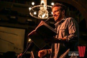 After the band played, Jim Beaver took the stage to read a passage from his chapter. As he climbed the stairs to the stage, the room broke into applause and whistles.