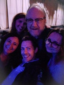 Two more fan contributors, Lucy and Claudine, arrived, along with FDEWB editor Alicia and my agent, Amy. For actor contributors, we had Rob of course, and Gil McKinney, Ruth Connell and Jim Beaver too. Gil brought his lovely wife, Jim brought his lovely girlfriend and his daughter Maddie. Ruth brought a whole bunch of awesome people – Elly Lachman and Tina Densmore of Kings of Con, Yael Groblas (Jane the Virgin), Alan Smyth (The Outfield), Adam Croasdell (Supernatural as well as Once Upon a Time and Reign), and Georgia Dolenz (actress and daughter of Micky Dolenz – her sister Ami is married to Jerry Trimble, who memorably played Ramiel on Supernatural – it’s a small SPN world!).