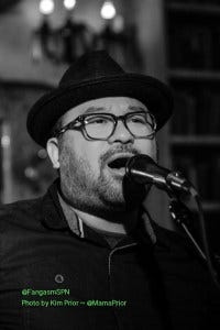 I happened to be on the phone with Rob Benedict shortly after I made the fateful decision to have a book release party, and on impulse asked him if he might be willing to not only come to the party (since his chapter in FDEWB is amazing) but maybe to play a few tunes on his guitar and sing too. I’m not sure what made me even think of it out of nowhere, and I certainly didn’t expect him to say yes, but he didn’t hesitate for a second.
