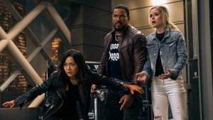 The Deep stays loyal to Homelander, taking out the VP candidate to make room for Victoria Neuman to take that spot, which means we get a little glimpse of Jim Beaver playing a Robert Singer who is not at all the Bobby Singer we knew and loved in Supernatural. The Deep is not in good shape by the end, however, watching his wife’s betrayal on TV as she promotes her new tell-all book. (I like that The Deep is often treated as the flip side of gender role stereotypes in his skin tight suit and tearful Doritos eating)