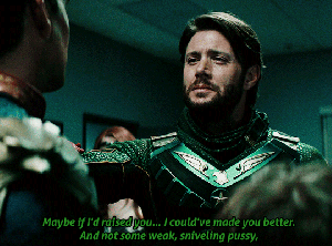 Soldier Boy: Maybe if I’d raised you, I could’ve made you better… not some weak sniveling pussy starved for attention…but there’s no fixing that now.