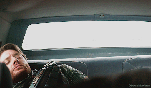 Anyway, he wakes up in the back seat of Butcher’s car as they head to Vought Tower, looking for all the world like a sleepy Dean Winchester and asking about Hughie with “Where’s the cum guzzler?”