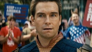 Homelander, relieved, smiles. (And if you didn’t think about standing in the middle of Fifth Avenue and shooting someone without losing voters, I’m shocked because, as Kripke says, this show ain’t subtle).