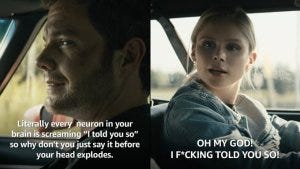 In this episode, Hughie has a revelation – and it’s another of my favorite scenes of the season. Annie comes to pick him up at the convenience store, giving her explicit permission to say ‘I told you so’ to him – which she does with great relief.