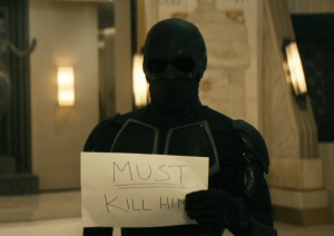 Black Noir has perhaps the most tragic arc in this episode, since he’s the only one who doesn’t survive it. The reason for is death, ultimately, is that he kept the secret of Homelander’s father from him, which is something Homelander cannot forgive. The cartoon voices in his head convince him that he can face his fears, so he makes the mistake of going back to Vought Tower and insisting to Homelander that they have to kill Soldier Boy. (It breaks my heart a little that he spells it “SOLDIR BOY”).