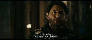 Frenchie and Kimiko’s story runs parallel to and touches on some of these themes. Frenchie was abused by his father too (it’s perhaps the most pervasive theme in the entire show). His response has been different but no less pathological – he’s taken refuge in drugs or tried to take control of violence meted out to him by making the choice to engage in it with lovers like Little Nina. He plays it out with Butcher too, allowing Butcher to use him and verbally abuse him as another twisted father figure. In this episode, MM confronts him about his drug use, and eventually Kimiko does too. And she finally gets through to him, in one of my favorite scenes from the finale, as she slaps him away from doing more coke. Frenchie insists he did his part, but Kimiko signs ‘We’re not finished, asshole!”