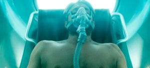 Grace Mallory watches as they wheel a naked unconscious Soldier Boy in on a gurney, gas mask over his face again, and seal him into a metal tube. Elton John sings “you can’t trap me in your penthouse, I’m goin’ back to my plow…”
