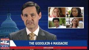 Cut to Cameron Coleman: Tragedy has happened again on campus. Four Godolkin students went on a brutal murder spree (we see Emma, Marie, Andre and Jordan’s photos).