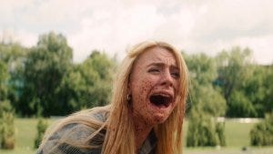 Marie, Jordan and Emma get to the Woods too late, so they try to clear the campus and save some human lives. For a little while it seems like Jeff the marketing guy might be the unlikely hero to save the school with his handy dandy Supe deafener. When a freed supe kid confronts him, he sneers “you were safer inside, dummy” and blows her up. Chaos breaks out across campus as the freed ‘experiments’ wreak havoc.
