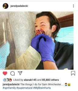 Early in the week Jared also posted a photo of him getting his COVID test, which looked distinctly uncomfortable. The production is clearly taking this seriously, and it’s a good thing – other productions haven’t been either as careful or as lucky. Someone on the new The Batman production tested positive, with word on the street that it’s the Batman himself, Robert Pattinson. I guess that makes that painful looking test very worth it!