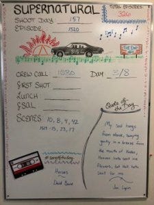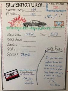 Supernatural has just completed its second to last week of filming – and the SPNFamily really needs a hug. It’s Sunday afternoon as I’m writing this, and my heart is a little broken (okay, a lot…) knowing the show has filmed its last scenes in the studio. Ever. That it only has two more days of filming, out on the road on location in beautiful Vancouver, and then it comes to an end. That’s probably going to make my look back at last week even more emotional than it would have been otherwise, so bear with me. I want to make sure I capture everything that happens in the last months of the show filming and airing, so this is my weekly round up of all things Supernatural (and how many made me need tissues. Hint: A lot).