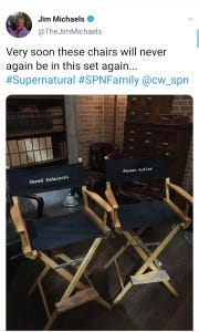Producer Jim Michaels posted a photo of Jared and Jensen’s chairs on set for perhaps the last time after fifteen years of being there. That caused some comments he probably didn’t anticipate too, wondering why Misha’s chair wasn’t there. I honestly don’t think we know yet whether or not Misha is in episode 20, but if he is, they clearly do not want us to know that so the chair would have been a pretty obvious giveaway!