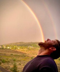 Misha also cheered us up with a photo of him ‘tasting the rainbow’, and Jensen could not resist a snarky reply. Location in the photo? Hard to say – which seems to be the point!