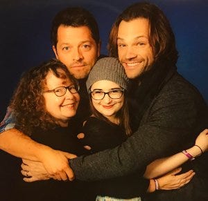 One of my toughest losses in these past fourteen years was losing my dad. My mom died long ago, and my dad was my rock. He was my biggest cheerleader while I put myself through grad school with three jobs and later when I said I wanted to write books – on a television show he’d never seen. It didn’t matter; he was behind me all the way. I got the call that my dad had unexpectedly passed away when I was at a Supernatural convention. I put down the phone and literally stepped off the airport shuttle and into the con hotel, numb and in shock. It seemed like the worst timing possible; in fact, it was the best. I walked into the arms (literally) of the most supportive group of people on the planet. Friends took my hand and helped me stay calm. Creation staff brought me ibuprofen and literally walked me to my seat and kept checking on me to be sure I was okay. The actors who play the characters I adore heard the news even though I didn’t tell them, and one by one they came over to tell me how sorry they were and to give me a hug. One of the worst days of my life is wrapped in memories of feeling loved and taken care of, because I happened to be immersed in the Supernatural family.