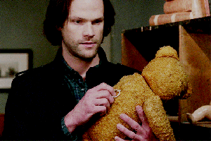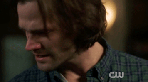What makes this scene so priceless is Sam’s disapproving scowl at what Dean’s doing, which again had me trying to laugh and more or less just making incoherent almost-sounds.