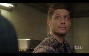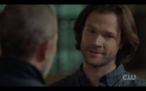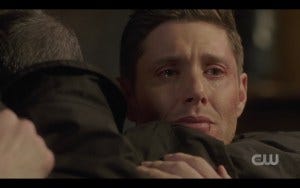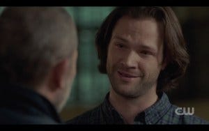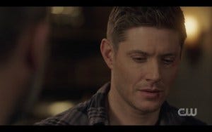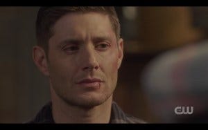 Dean’s face in that moment, as he hears those words. It heals something in Dean’s soul, something deep and profound and terribly broken. And Jensen Ackles lets us experience every second of that. It sinks into our psyches as it sinks into Dean’s, healing something there as well.