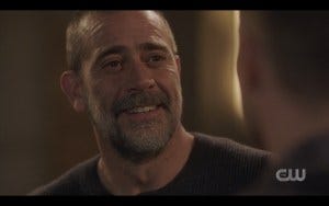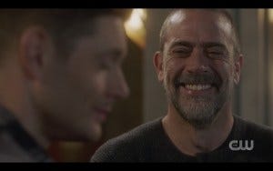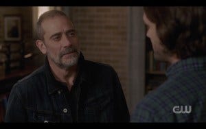 Very minor head scratch for the decision to let Jeffrey Dean Morgan look like 2019 Jeffrey Dean Morgan instead of what John Winchester looked like in 2005 when the show began airing, including keeping the gray in his hair and beard. He doesn’t in fact look like he did 14 years ago, but I don’t really mind hand waving that because clearly nobody was going to play John Winchester in this episode but JDM and so I’m cool with however that had to happen.
