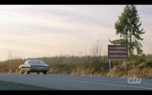 The boys head home in Baby, driving past the “Lebanon, Kansas” sign.
